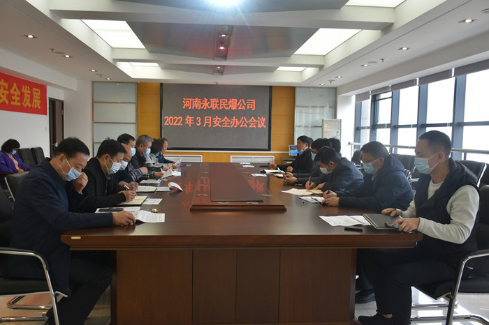2022年3月30日,河南省永聯民爆器材股份有限公司召開了3月份安全辦公會議,公司領導班子、安委會成員、安委會辦公室成員參加了會議。會議由公司副總經理靳義國主持,公司董事長、總經理劉嵩參加會議并講話。