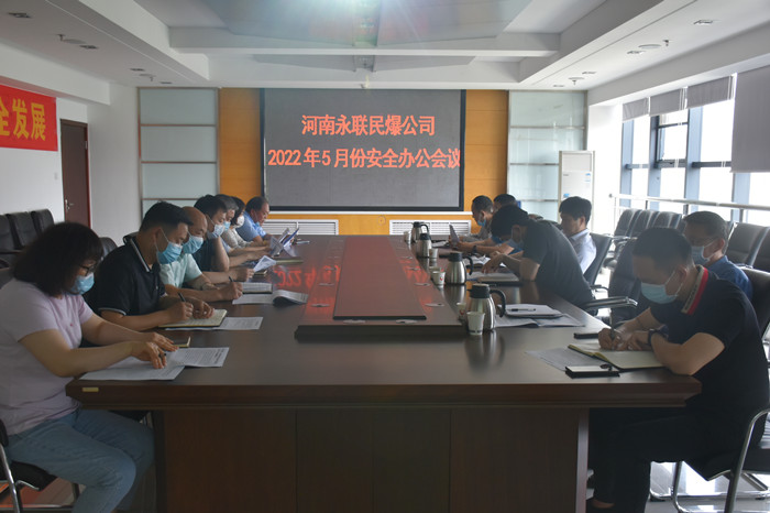 2022年5月27日,河南省永聯民爆器材股份有限公司召開了5月份安全辦公會議,公司領導班子、安委會成員、安委會辦公室成員參加了會議。會議由公司副總經理靳義國主持,公司董事長、總經理劉嵩參加會議并講話。