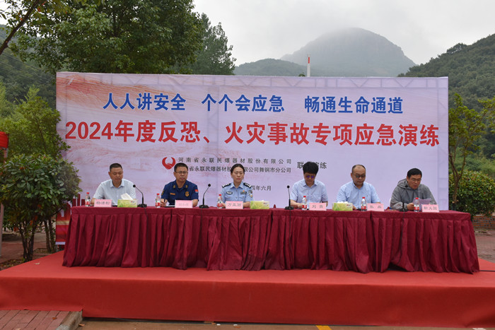 今年6月是全國第23個“安全生產月”,為進一步牢固樹立以人為本、安全發展的理念,防范化解重大風險、及時消除安全隱患、有效遏制生產安全事故,2024年6月21日,河南省永聯民爆器材股份有限公司與舞鋼市分公司聯合開展以“人人講安全、個個會應急——暢通生命通道”為主題的聯合專項應急演練。