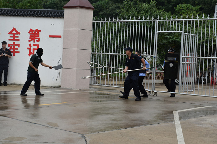 在預設情境下,庫區崗哨發現可疑人員試圖闖入,值守人員勸阻無效后,恐怖分子持兇器砸門。值守人員迅速穿戴防護裝備,與恐怖分子對峙并上報情況。演練副總指揮迅速啟動反恐專項應急預案并報警,各小組支援,對恐怖分子形成夾擊之勢,規勸無果后展開搏斗。最終,恐怖分子被制服,醫療組到場救治傷者。整個演練過程中,所有參演人員能夠按照真實場景進行處置,事件發生、報警、響應、支援、警戒、圍捕,過程連貫有序,人員嚴肅認真,程序銜接到位,達到預期效果。
